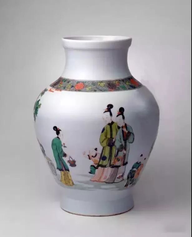 清雍正五彩仕女纹罐