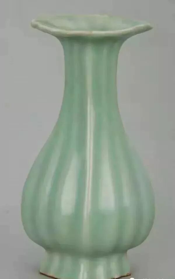 南宋龙泉窑青釉菱口瓜棱瓷瓶