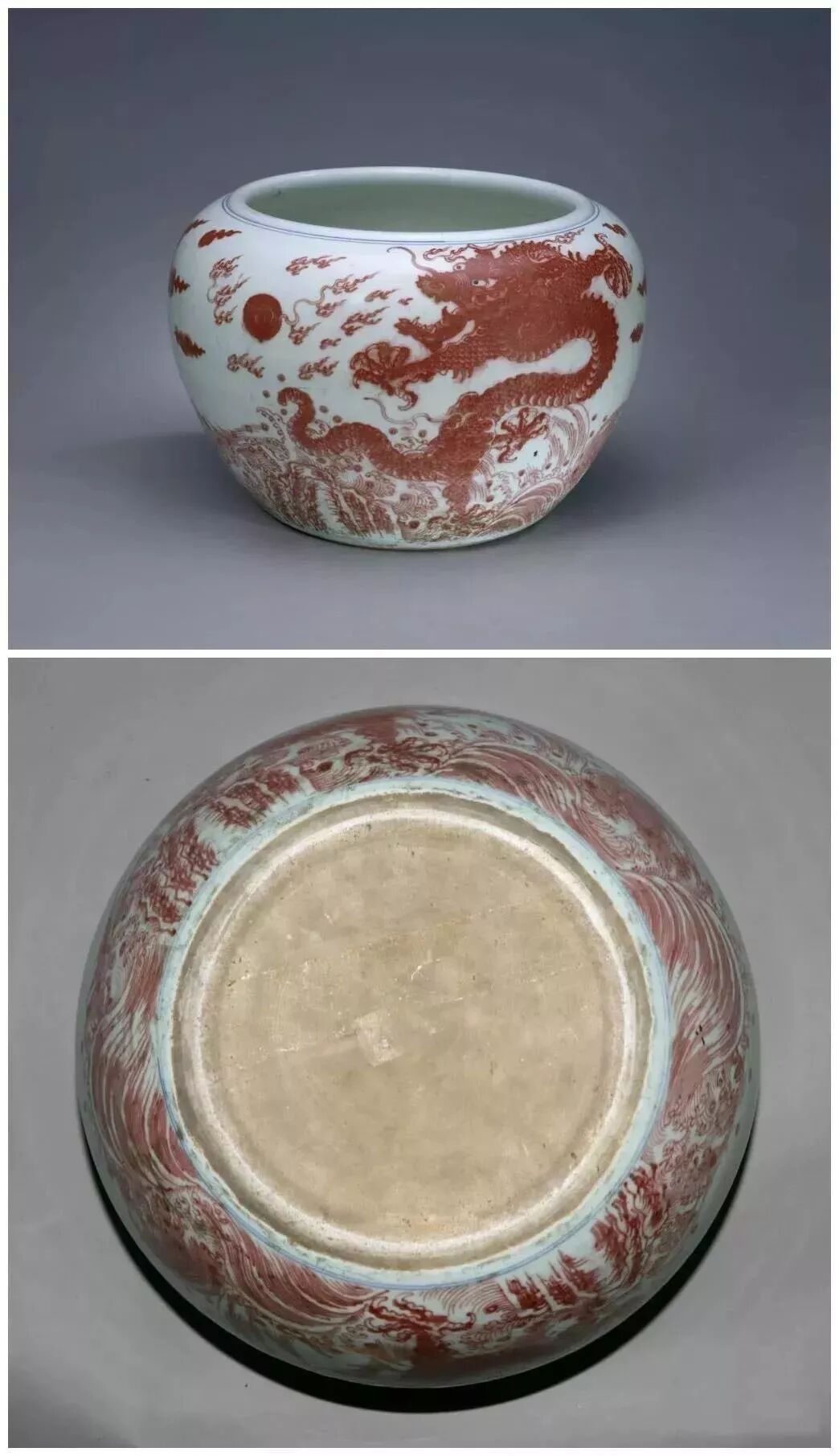 清康熙釉里红云龙纹钵缸