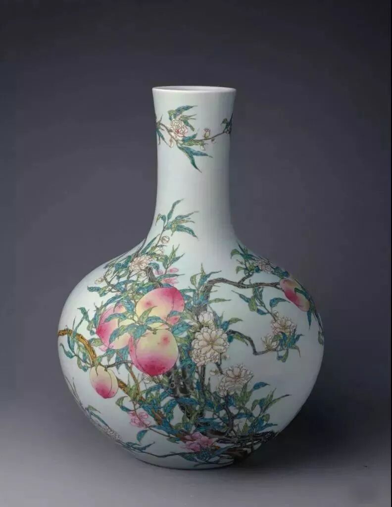 清乾隆粉彩九桃瓶