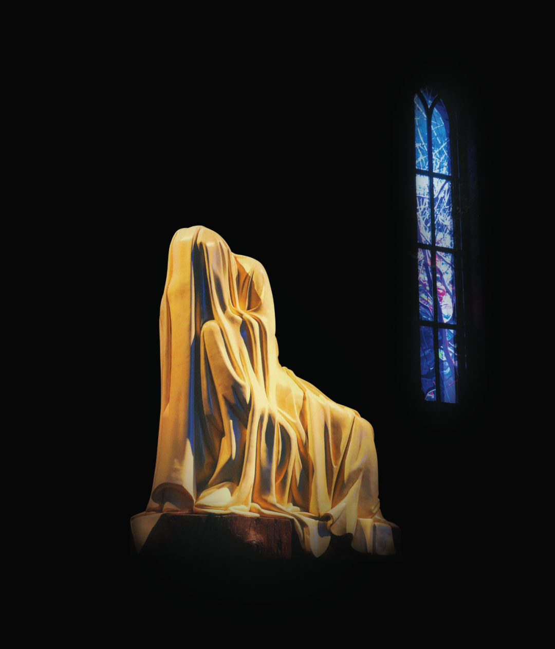 本件雕塑《无题》即是以文艺复兴艺术巨匠米开朗基罗最富盛名的雕塑《哀悼基督》为原型。但在经过覆盖之后,原作中强烈的宗教意味被有意识地削弱,转而散发出一种含蓄而又深沉的,根植于人性深处的悲悯。经过艺术家的转化与再创造,哀恸和压抑让位于凝重和崇高,死亡的讖语终于转化为希望的预示。