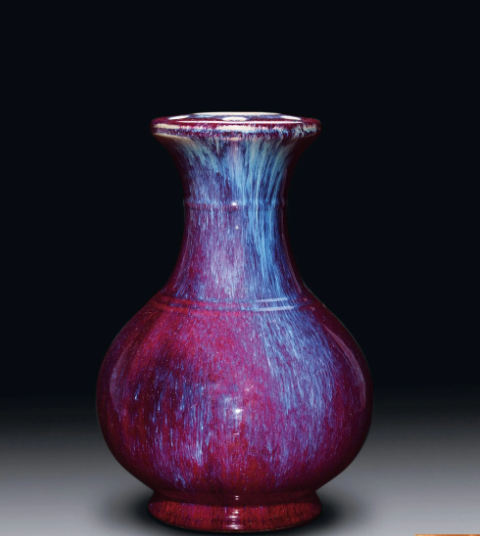 窑变花釉早在唐代之前青釉瓷器上就偶有窑变现象,唐代鲁山窑的黑釉花斑瓷,称“花瓷”;宋代钧窑生产的瓷器红、蓝、灰白互相交织,形成千姿百态的釉色分布。清代已把窑变釉作为一种颜色釉专门生产。
