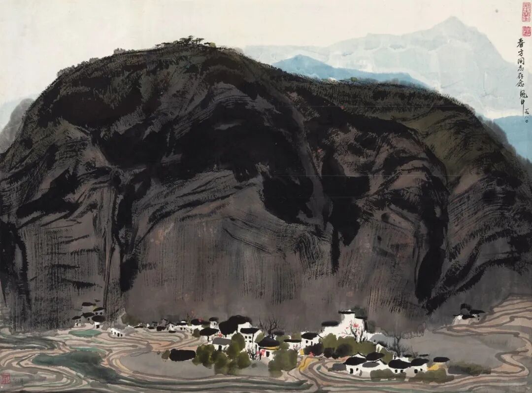 1.“吴冠中画展”,深巷画廊,北京,2006年5月1日-6月30日。2.“艺冠中外——吴冠中艺术展”,山东省博物馆,济南,2008年7月。3.“风筝不断线——吴冠中百年诞辰艺术展”,保利艺术博物馆,三亚2019年2月3日-2月10日、香港2019年2月15日-3月1日、北京2019年3月16日-3月31日。4.「风筝不断线—缅怀吴冠中先生经典作品收藏大展」,保利艺术博物馆,2010年。1.《深巷画廊——吴冠中画展》第35页,深巷画廊,2006年。2.《艺冠中外——吴冠中艺术展》第86-87页,百雅轩,山东省博物馆,2008年。3.《风筝不断线:缅怀吴冠中先生经典作品收藏大展─来自全球华人珍藏》第60-61页,保利艺术博物馆,2010年。来源:北京拍卖会2005年春季拍卖会Lot649。吴冠中在《武夷山村》中将中国福建的丹山怪石,以块面之塑造、空间之层次、及色彩之多变,构成无限丰富的「形式美」。寥寥可数的线条、几抹随性晕染的墨色,点缀似地绘上一片星星点点的村落,尽显武夷山之巍峨。画面构思非常巧妙,采用了侧面烘托的表现手法,山脚的村庄正是全图的点睛之笔。画面风格简洁流畅,极富艺术感染力,是吴冠中「银灰时期」的经典之作。