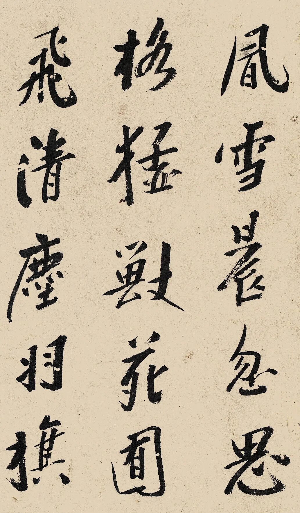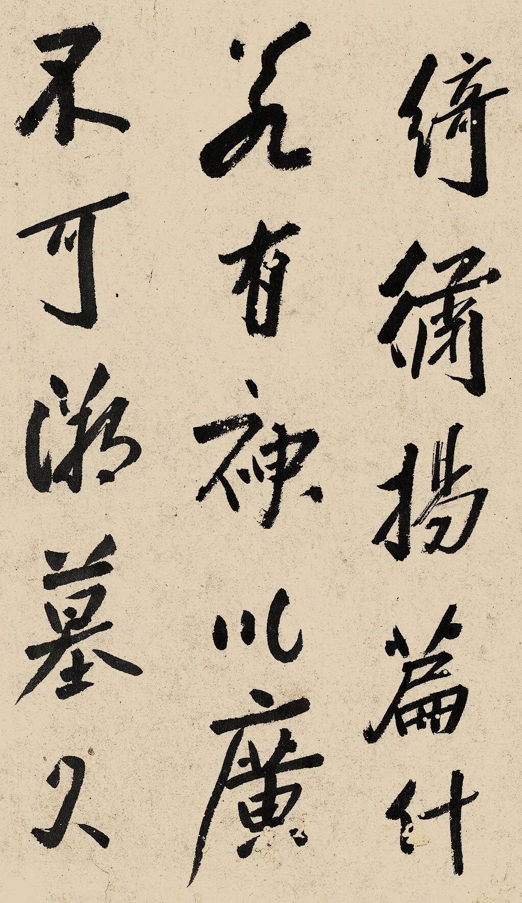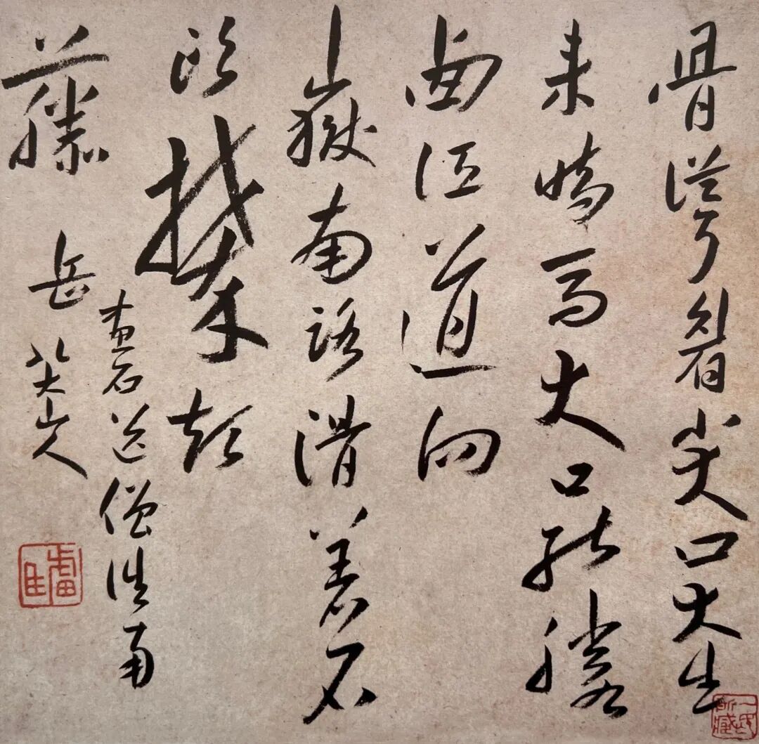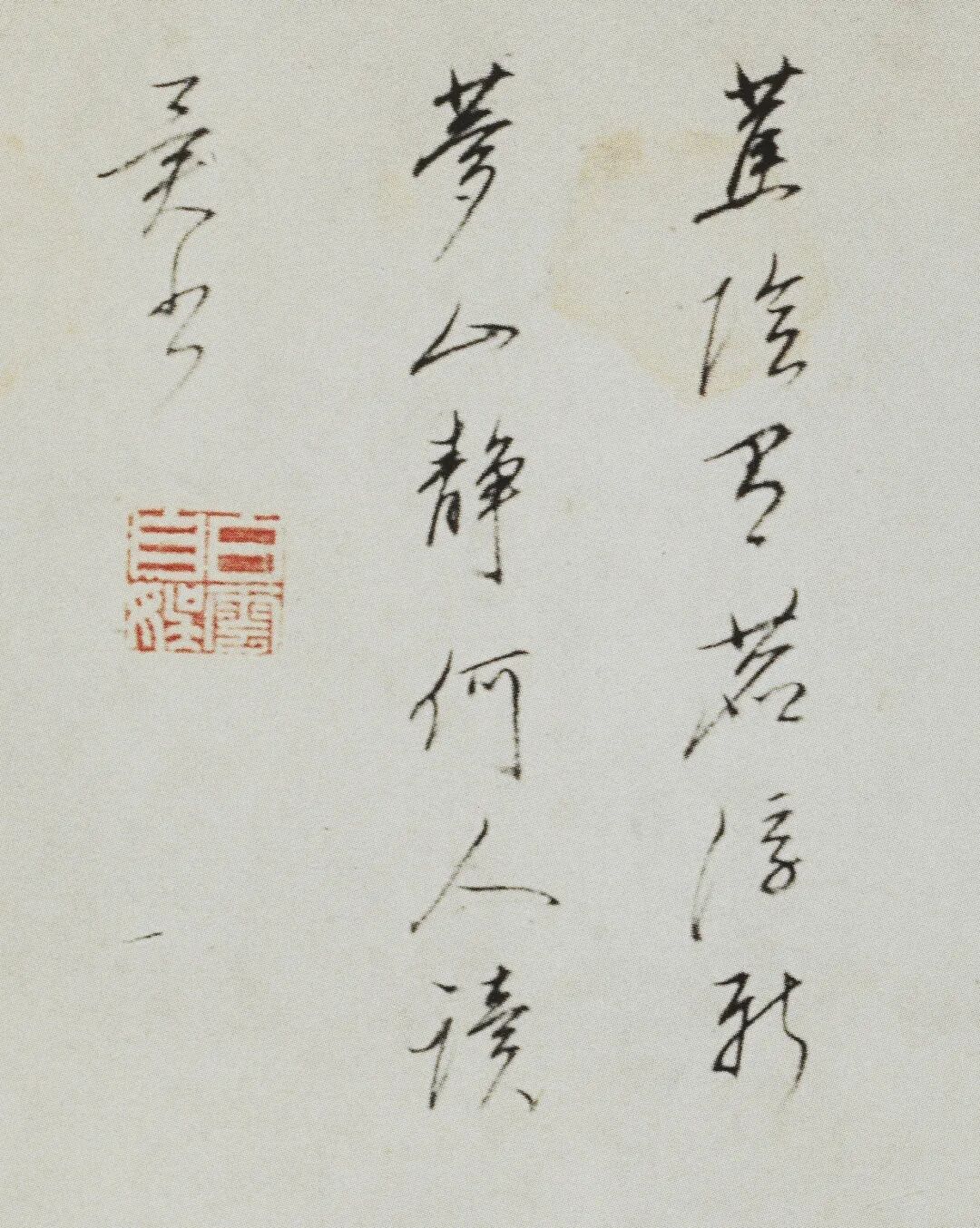 八大山人《行草<杜诗>册》(局部)据研究统计,类似《行草<杜诗>册》此期的完整册页或手卷书法作品仅有十余件存世,且几乎都为公藏,可谓是一纸难求。《行草<杜诗>册》作为目前市场唯一可流通的第四时期书法册,堪称巨迹。不论书法还是绘画,八大的作品一直深受市场追捧,而完整之书法册页仅见《宋之问诗册》,并于2019年在香港拍得3012万港币善价。本册首尾完整,递藏清晰,装潢考究,兼具书法艺术、学术研究等多重价值,弥足珍贵。本册为《全集》所佚,其补白之功及重要性也就不言而喻了。![]()