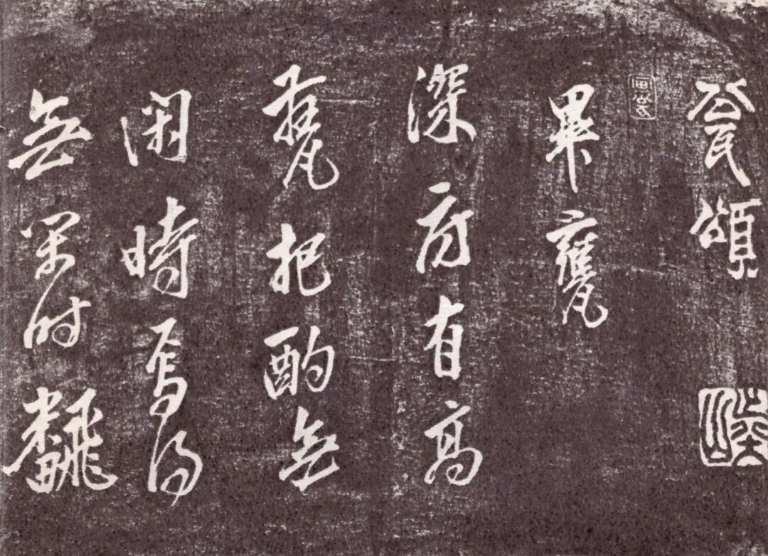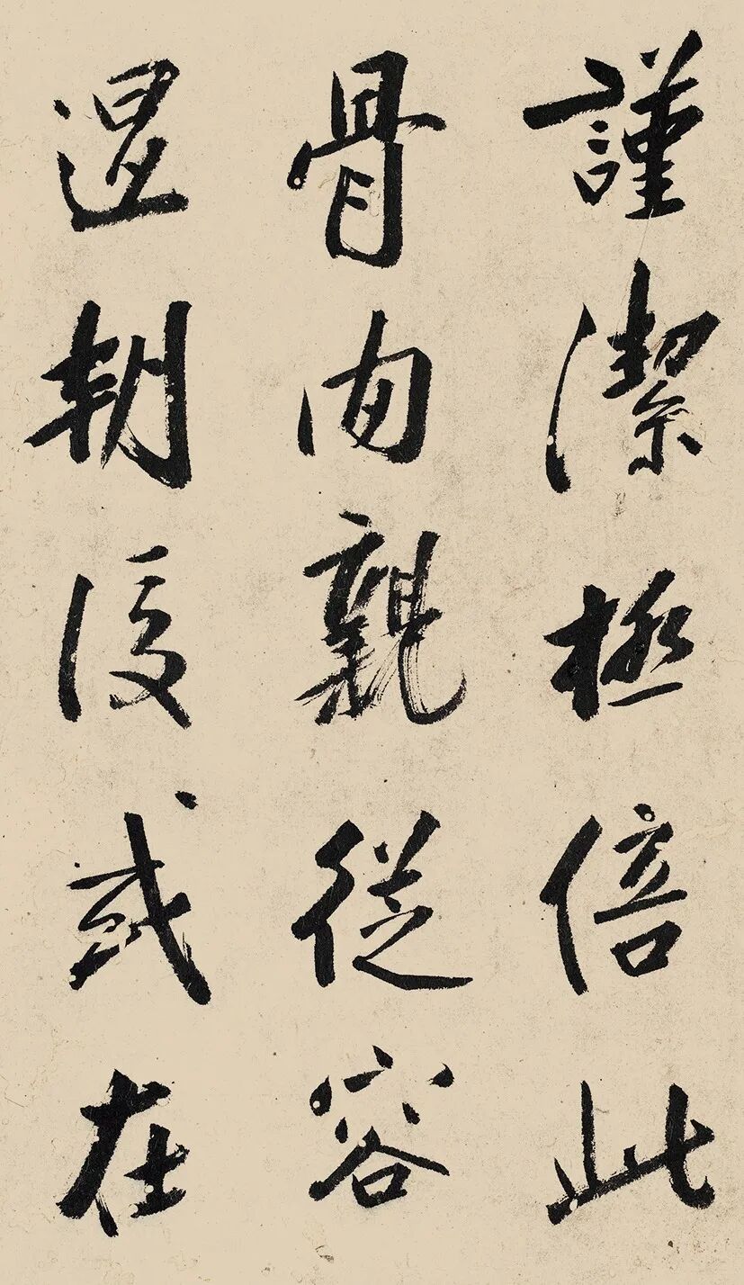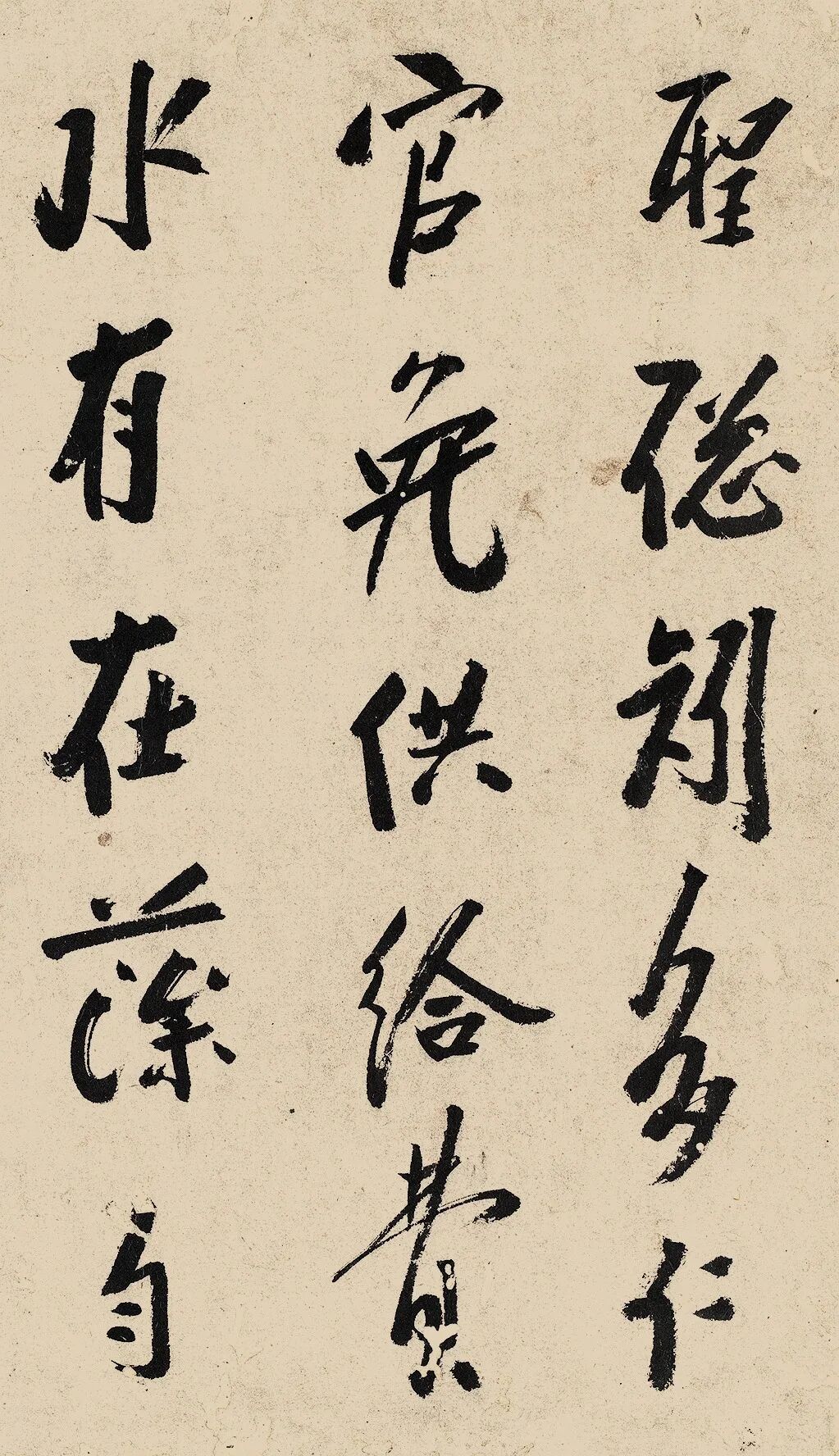 八大山人《行草<杜诗>册》(局部)八大山人传世的书法作品从最早己亥年(1659)三十四岁的《传綮写生册》起,至乙酉年(1705)八十岁的《醉翁吟》止,在其书风的发展过程中,通过对比八大山人书法作品笔法与结构的演变,比较多位学者专家的研究成果,我们以王方宇先生《八大山人作品的分期问题》一文的结论为标准,将八大山人书法划分为五个时期(图1)。五个时期以1683年为界限分为两大阶段,第一阶段有三个时期,即第一时期学欧阳询,第二时期学董其昌,第三时期学黄庭坚;第二阶段的两个时期又以癸酉年(1693)为界,之前为第四时期,之后为第五时期。本册八大山人《行草<杜诗>册》为王方宇先生所列八大山人书法创作第四时期的作品。按王方宇先生的分期法,八大山人书风的第一时期为1659年以前,第二时期为1659-1671年,第三时期为1671-1683年,第四时期为1683-1693年,第五时期为1693-1705年。各个时期典型代表作品,分述如下:第一时期台北故宫博物院藏八大山人1657年作《传綮写生册》(图2),为典型学习唐人欧阳询、褚遂良的书风代表。第二时期1657-1671年间,逐渐转向学习董其昌行草笔法,代表作参见故宫博物院藏有八大山人作《墨花图卷》题款部分(图3)。第三时期1671-1683年间,八大深得董其昌精髓的同时,开始仿宋人黄庭坚,用笔转为侧锋,结构开阔,字形倾斜。特别是上海博物馆藏其作于约1683年的《行书酒德颂卷》(图4),款有“仿山谷老人书”,为明确学习黄庭坚最有代表性的作品。除此之外,还有南昌八大山人纪念馆藏《自题个山小像》书法部分、上海博物馆藏八大山人《题夏雯看竹图》、启功先生藏《八大山人行草<瓮颂>》拓片(图5)等为代表。第四时期1683-1693年间,在学习黄庭坚书风的同时,八大山人一直留心魏晋,直追二王。董其昌、黄庭坚、二王三位一体,参杂楷书、行书、草书、章草笔意,形成了字形倾斜,结构开张,大小错落,简约复古的特点。代表作有启功先生藏《八大山人行草<爱梅述>》拓片(图6),石头书屋藏八大山人《行草乐苑卷》,故宫博物院藏八大山人《杂画册》草书对题部分(图7)、《草书卢鸿草堂诗册》(图8)、《行草西园雅集卷》(图9)以及本册《行草<杜诗>册》(图10)。第五时期1693-1705年间,经过前期不断地融合与探索,书风开始向内收敛,融合楷、行、草为一体,用笔由方转圆,结构趋于平稳,牵引连带,行气统一。尽显晋人风韵,开始走向成熟的典型面貌。此时期代表作品较多,不一一赘述。经过八大山人不断地仿古融合,求变创新,用笔上从圆到方,再从方到圆,结构上从平正到夸张,再从夸张到平正。穿插楷书、草书、章草、大草,以此循环往复,终成晚年个性鲜明的风格特征。