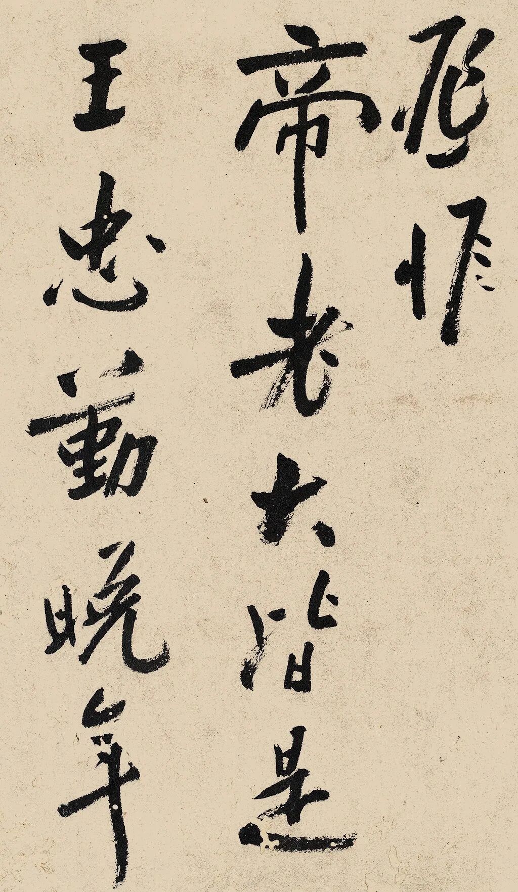 八大山人一生中,尝有借前人诗来表达自己的心声,再将自己的思想、情感、身世、经历融入其中,常常会有数字与原诗不同。此《行草<杜诗>册》与原诗亦有9字不同,分别为:髯(鬚)、昔(往)、容(听)、飞(腾)、出(飞)、入(又)、匀(鳞)、惟(唯)、未(味),即是这种情况的体现。值得注意的是,通篇书写每行以四至六字不等,仅书“命”“圣”“帝”三字另起一行,以致前行只余二字,此中颇具深意,这或许又是一种对自身身世的隐喻。故好友罗牧《赠八大山人》说:“山人旧是缁袍客,忽到人间弄笔墨……少陵先生惜不在,眼前谁复哀王孙。”从1684年八大山人用“八大山人”四字署款以后,名声大震,求者甚重。本册为最新发现的署款“八大山人”四年后的典型书法代表作,是其探索书风变革的一次重要体现,更可以通过此册追踪八大山人的书法渊源,探求他的书学思想,使此期书风发展之轨迹更加生动而明确。![]()