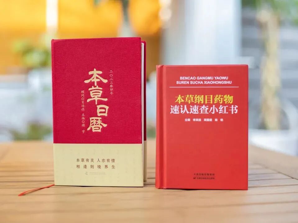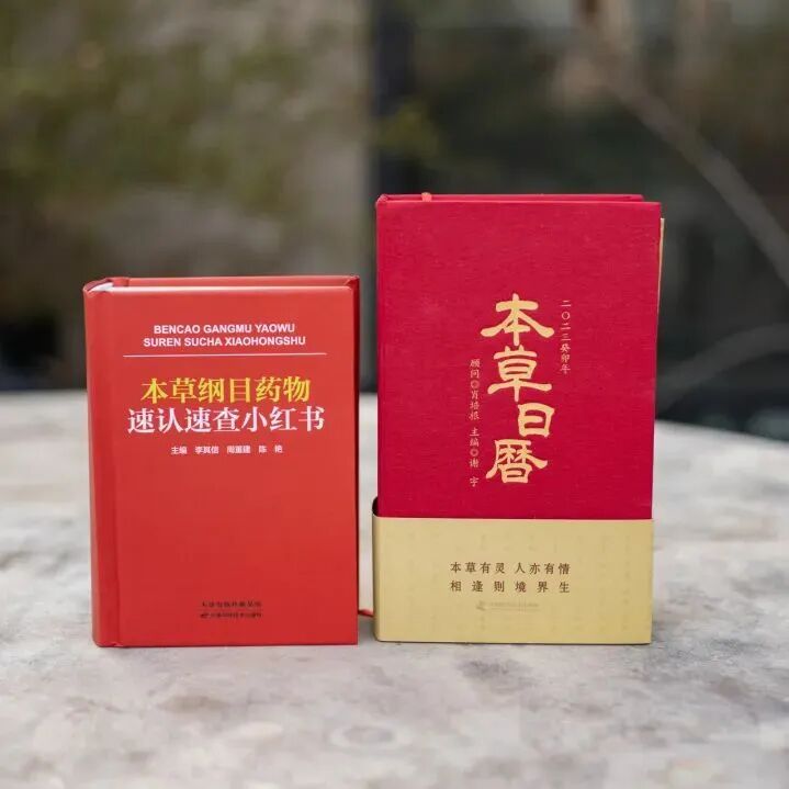 套装中除了《本草日历2023》,还有一本《本草纲目药物速认速查小红书》。