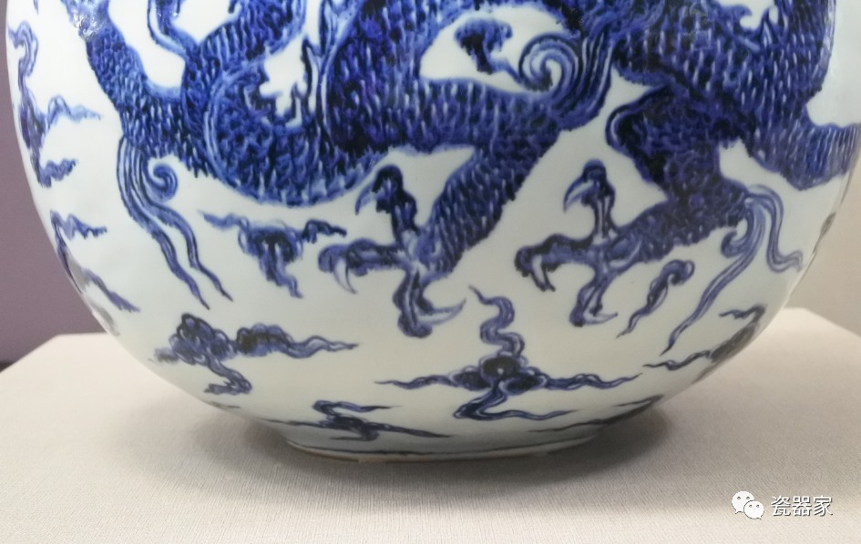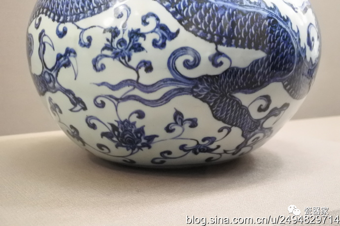 洒蓝釉留白堆塑龙纹大扁壶,元代还是明代?