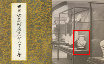1.《东西古美术展览会》,昭和7年(1932年)5月9日-11日,日本,大班美术俱乐部,山中商会主办;2.《世界古美术展览会》,昭和7年(1932年)11月22日-27日,日本,东京上野公园,山中商会主办,东京美术俱乐部协办1.山中商会编,《世界古美术展览会》,昭和7年(1932年),图版654;2.山中商会编,《世界古美术展览会写真集》,昭和7年(1932年),陈设摄影图;3.山中商会编,《东西古美术展览会》,昭和7年(1932年),编号584;4.金立言主编,《东瀛遗珠——山中商会及日本旧藏名窑瓷器》,2020年,北京工艺美术出版社,图114;5.山中让监制、金立言编译,《山中商会经手中国艺术品资料汇编》,2020年,上海书画出版社,图654