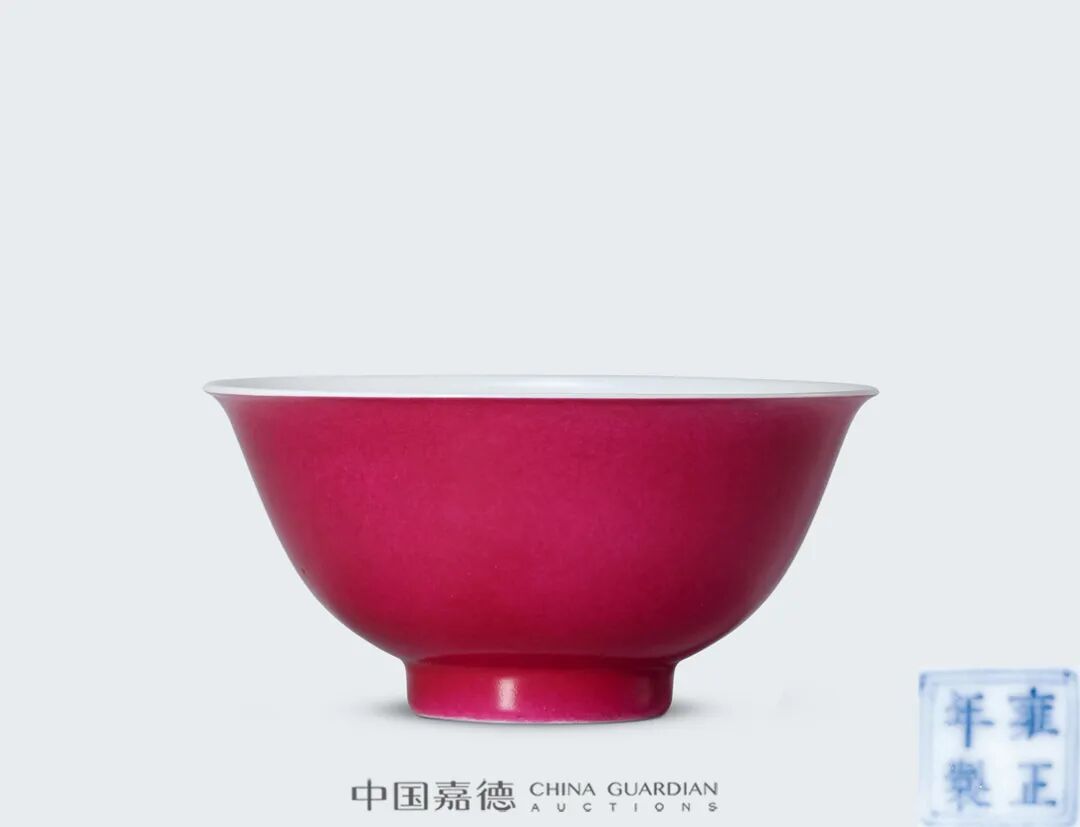 中国嘉德2021年春拍Lot 3074“清雍正内暗花龙纹外胭脂红釉茶圆”为与本品相同品种,以3,565,000元释出,可作参考。