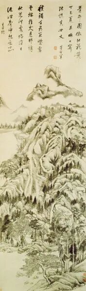 董其昌的《青卞山图》,有极高的艺术造诣。这幅立轴画,是为仿董源的用笔,完全从笔墨形式上把原来充满真实文化内涵的画面,抽象成为一个独特的形式结构,让人体会到笔墨本身所具有的特殊表现力。