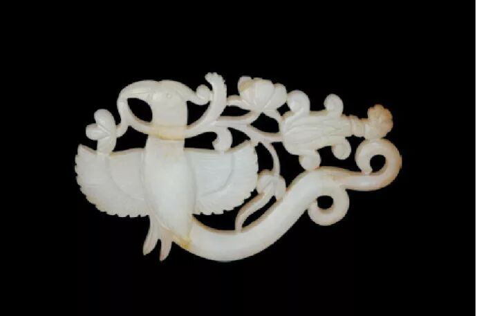 它反映了当时中国与西域文化交流和人员往来的繁荣昌盛的景象。唐代玉器上的动物造型也突然增多。除传统的龙、凤、螭外,更有一些写实性很强并具某种吉祥寓意和为推崇伦理道德服务的动物出现。见者有狮子、骆驼、鹿、象、鹤、雁、鸳鸯、孔雀。绶带乌等。其中狮子、孔雀两种动物为玉器中首次出现,鹤、雁等鸟形为成对相向展翅飞翔态。