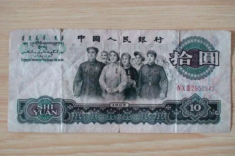 十品:没有流通过,不过因时间过长,保存不当等而影响到票面,如光泽、颜色的轻微变化,轻度折痕等。多见于整刀的首尾张。