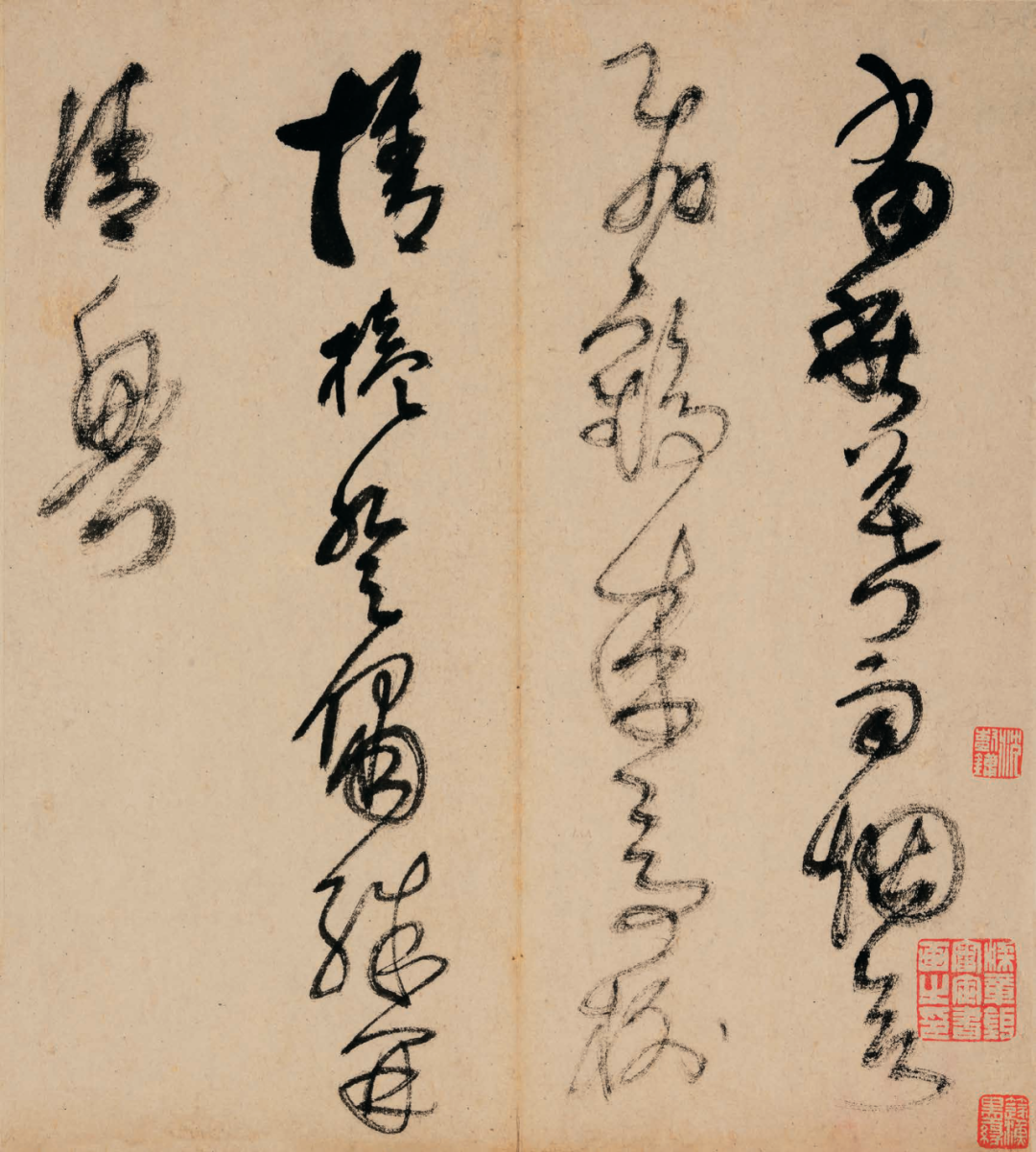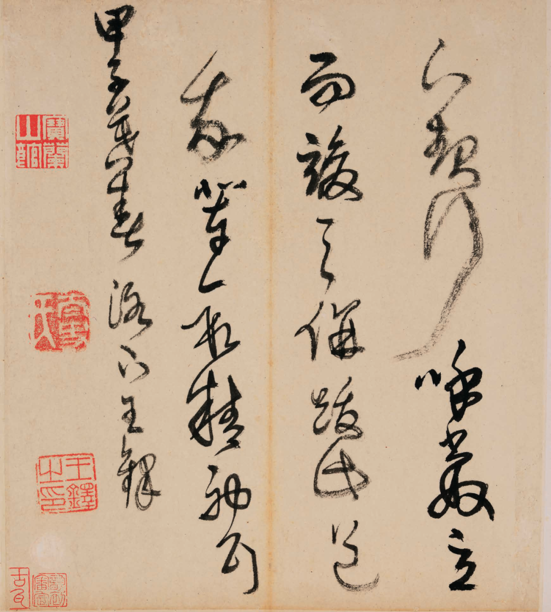 明中晚期以降,地域商业文明的发达、阳明心学的兴起、以及政治环境的错综,一定程度上客观上促进了艺术上尚奇崇古的风潮,在书法方面,出现了王铎、傅山、张瑞图等这样极具开创性的书法大家,成为中国书法史上一座奇丽的高峰。