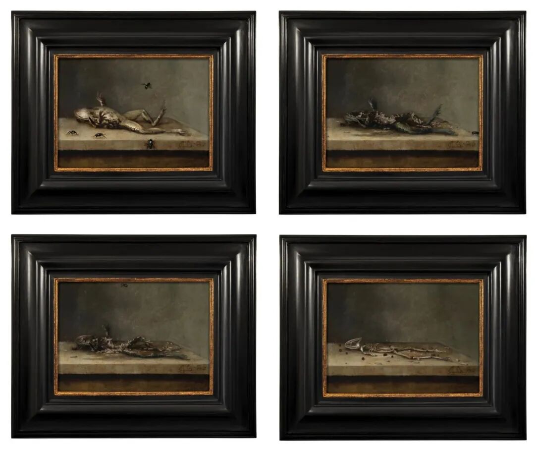 这得说到这个系列的出发点。2007 年的一项研究表明,观者在博物馆及画廊里观看艺术作品的平均时间约为 4-6 秒,这成了我们创作这个系列的部分动力。我们一直都对荷兰古典油画感兴趣。17 世纪静物画的细节生动,为(动画)转换开辟了很多可能性——通过 CGI(计算机生成图像),一切皆有可能。我们的艺术创作始终基于色彩,并将新技术与回顾过往的理念相结合。长久以来,17 世纪静物画都是我们观察自然中的颜色的灵感源泉。(就颜色而言——大自然永远不会出错!)对色彩的这个理解也可以延展到我们除了这个系列外的其他作品。