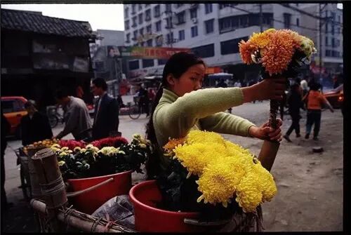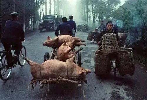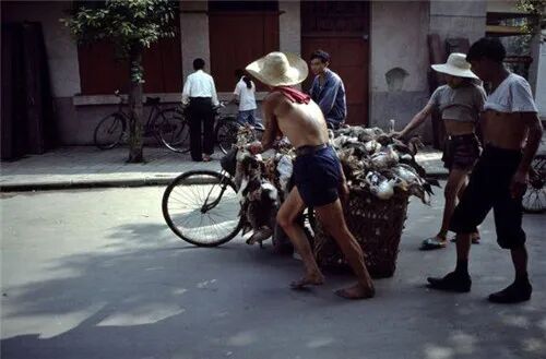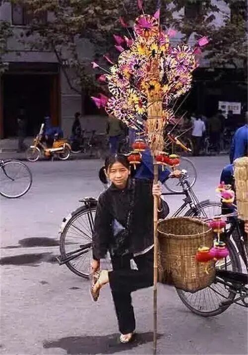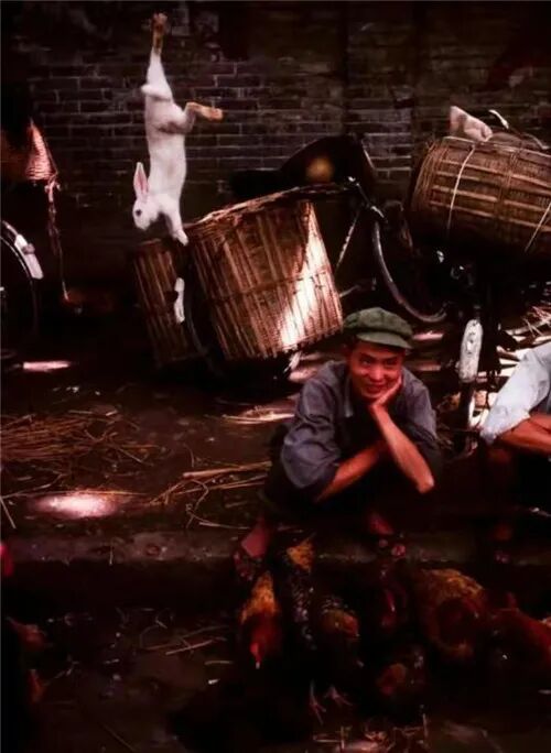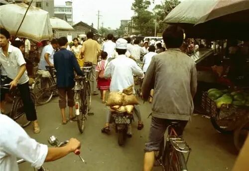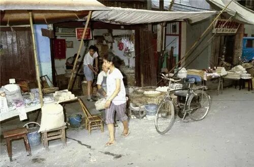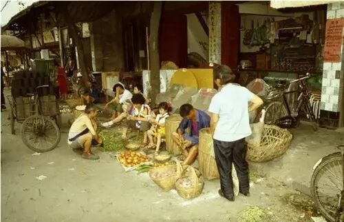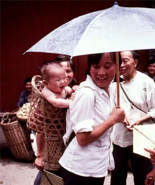 用竹篓背着宝宝逛菜市场(1984)