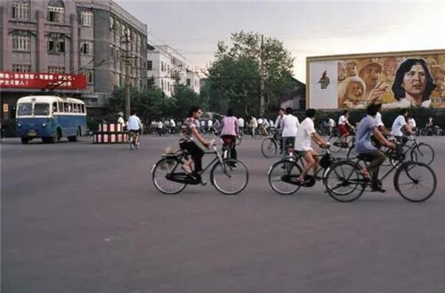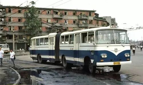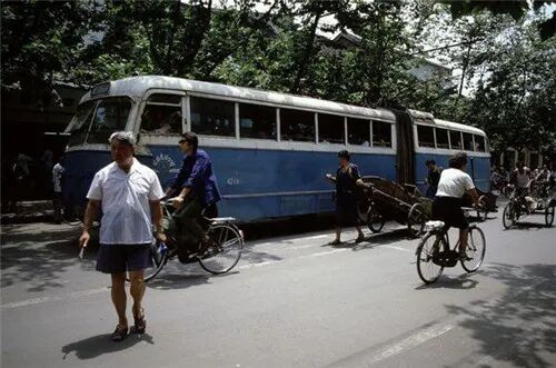 1路公交车、三轮车和行人(1983)