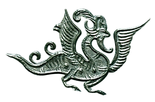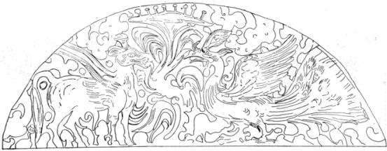 此镜中有一鱼,背生双翼,腾飞与两只小鸟上方,似翱翔于空中。这类鱼可能是文鳐,又称文鱼。