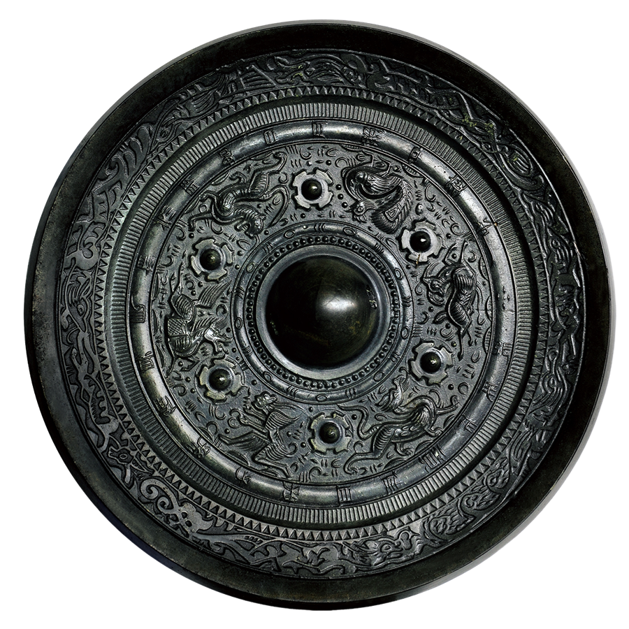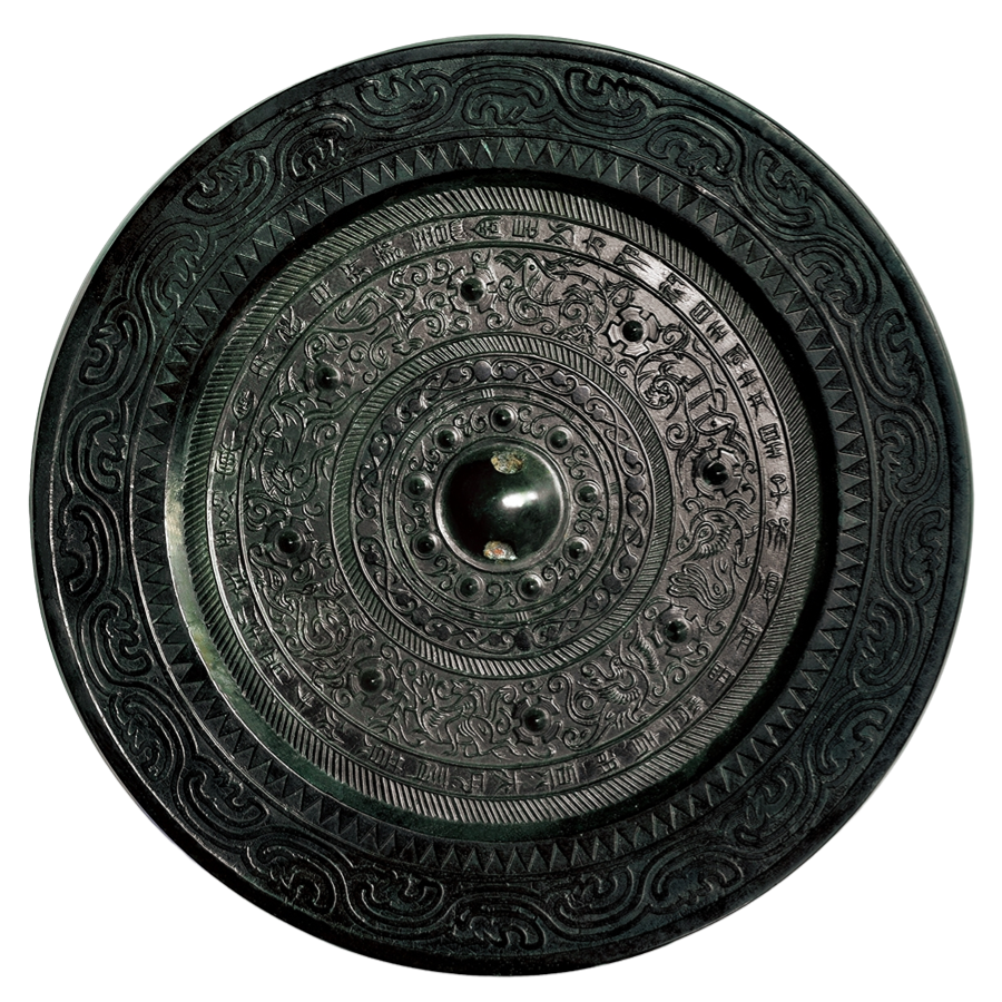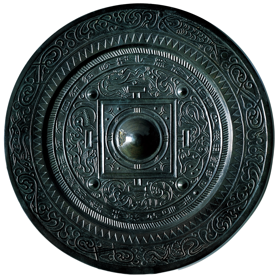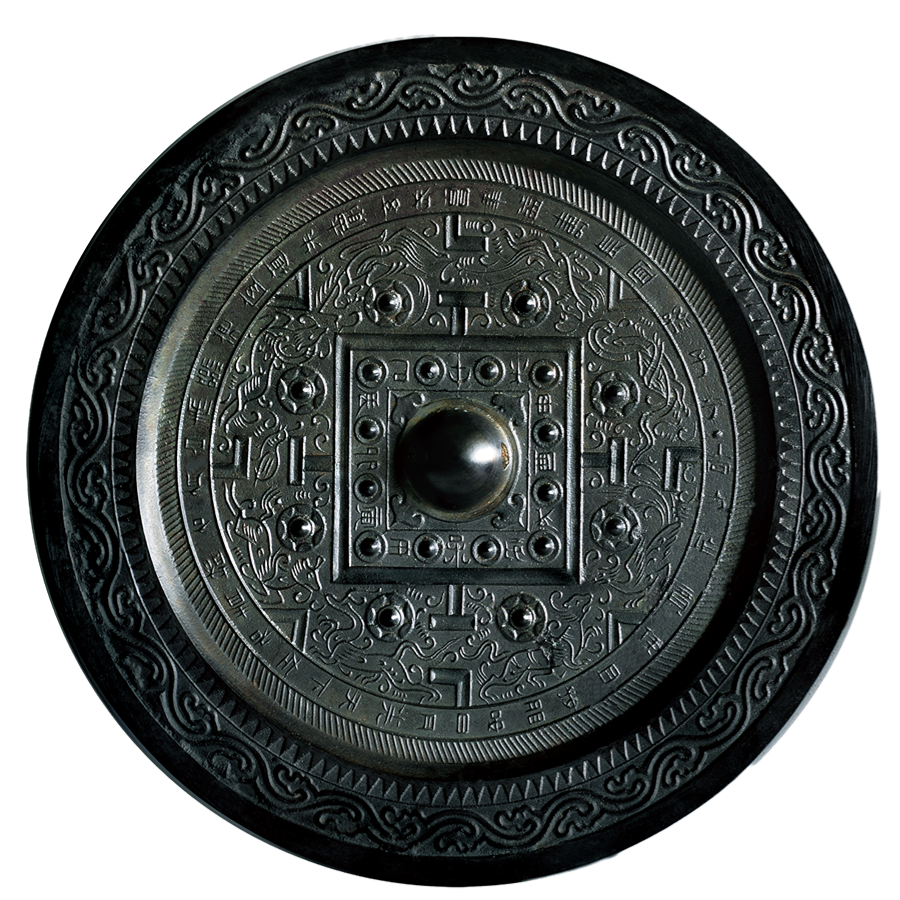 铭文:尚方作竟(镜)佳且好,明如日月光天下,左有青龙,右有白虎,统德序道,朱爵(雀)玄武,曾(增)年益寿,长宜孙子兮。