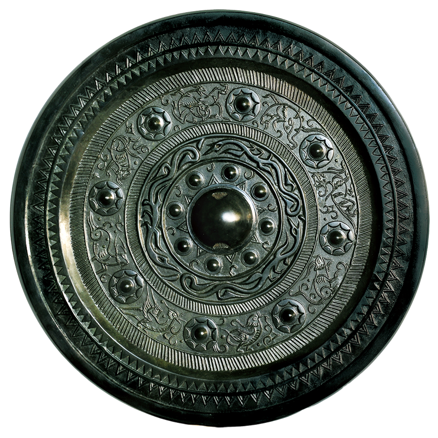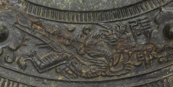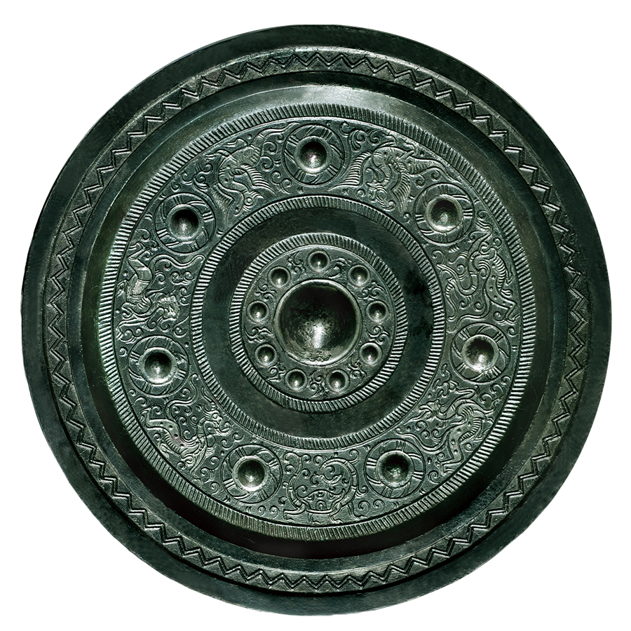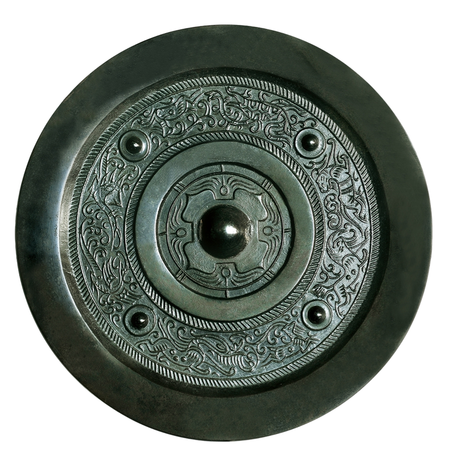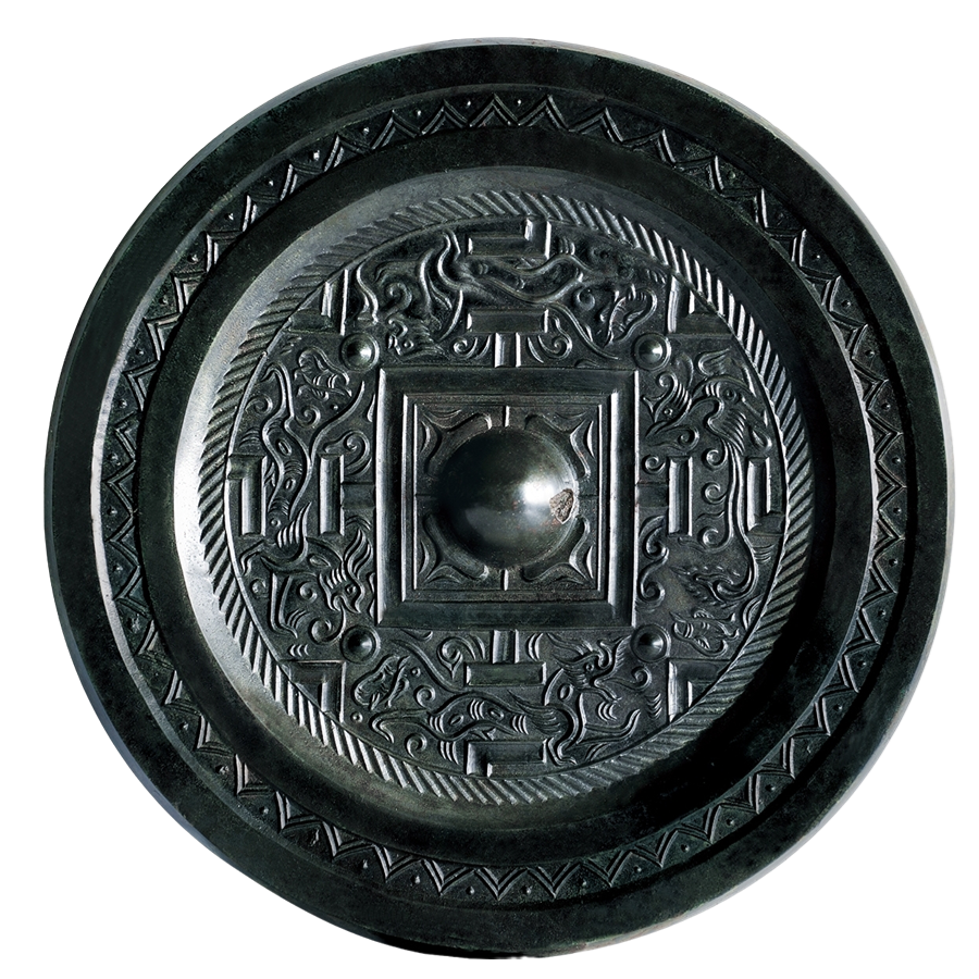 铭文:尚方作竟(镜)佳且好,明如日月光天下,左有青龙,右有白虎,统德序道,朱爵(雀)玄武,曾(增)年益寿,长宜孙子兮。