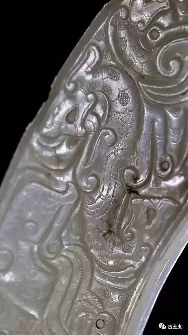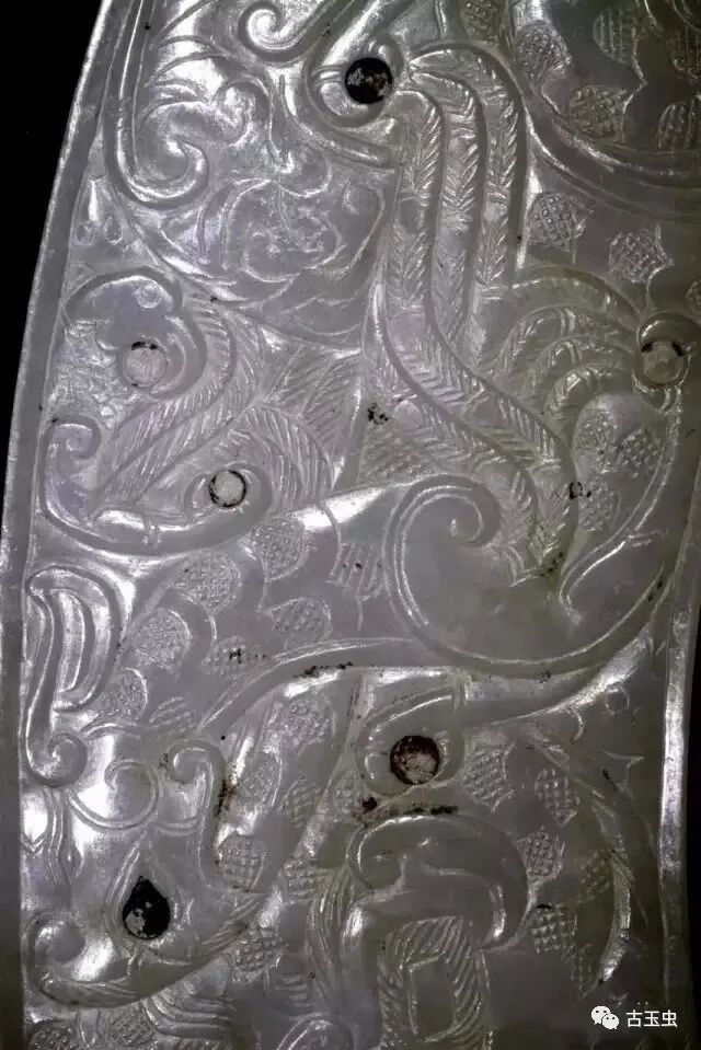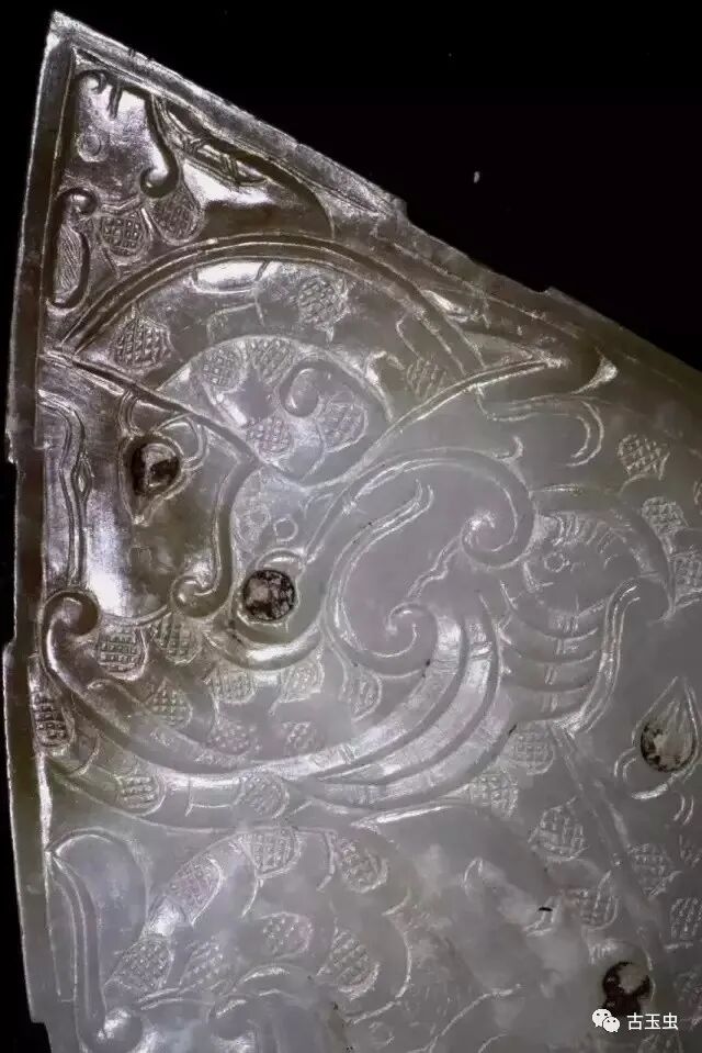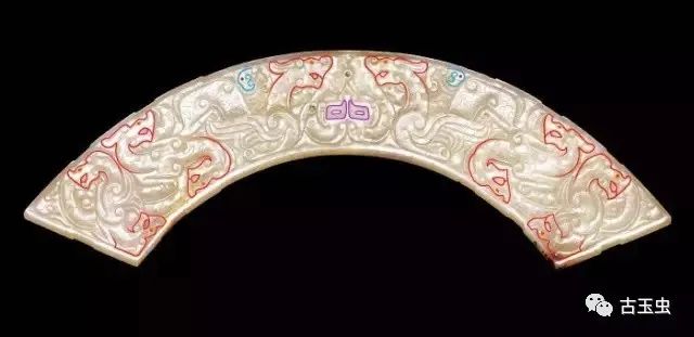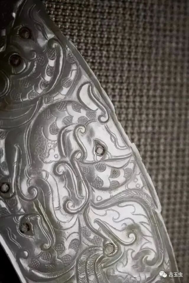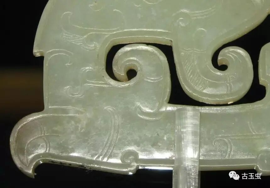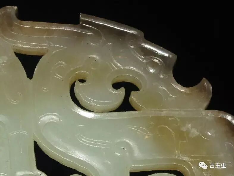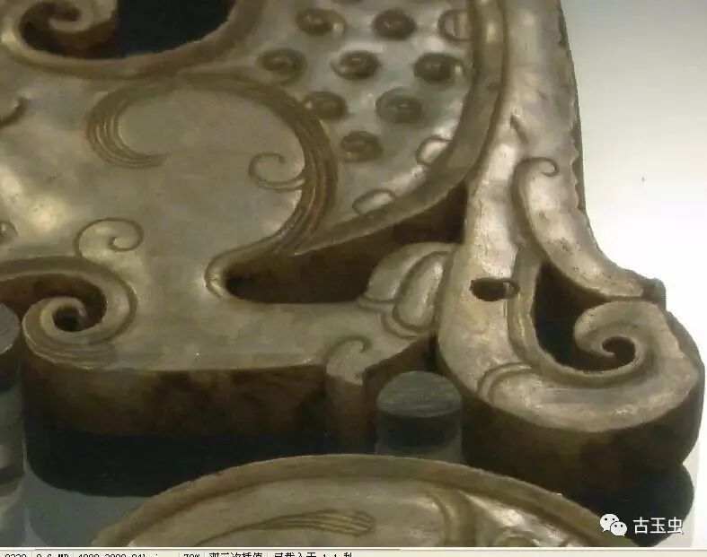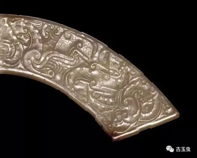 同坑出土的玉戈,在内上浅浮雕的龙头,与此璜的龙头绝似。