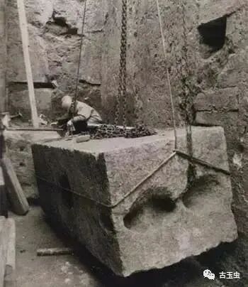 然而,即使在二千多年后的今天,都须要起重机才能搬运的巨大塞石,还是无法阻挡盗墓者,盗墓者在每组塞石右上角那块凿出“牛鼻眼”,然后牵引上绳索将前后四块塞石一一拉出,楚王陵主墓门后各室主要物品在早年即被盗劫一空。