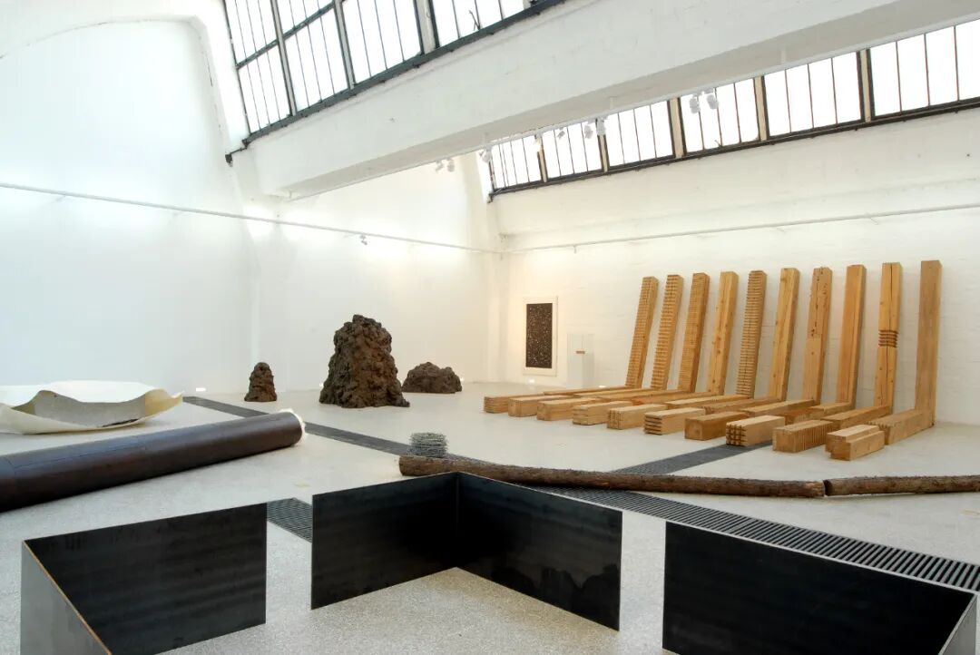 1970年前后,作为美术运动“物派”的重要艺术家活跃在国内外的展览会上,菅木志雄主要以石、木、纸、布、金属等日常生活中的物料进行创作。大胆地运用空间制作大型装置作品,构建素材与素材、素材与空间的关系,突出物质本身所具有的属性。