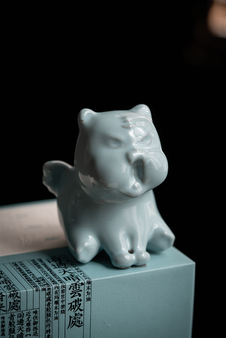 胖乎乎的小脑袋,肥墩墩的身子,还有两只扑闪扑闪的可爱小翅膀。好像随时都要起飞,发出“嗷呜”一声的萌虎咆哮。仔细端详它的“证件照”,更是要被萌化了。精湛汝瓷工艺让它看起来如玉一般莹润通透,单看图片就可以感受到摸在手里的质感,让人爱不释手。