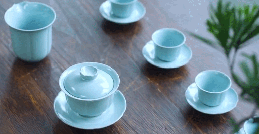 这样一只非遗工艺的汝瓷葵口盖碗,单独买要568一套(带礼盒)