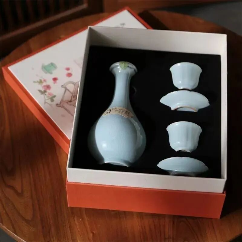 汝瓷以玛瑙入釉,用于盛酒,能很好地保持酒质,促进酒精转化,使酒的口感更加醇厚柔和,可谓是天作之合。