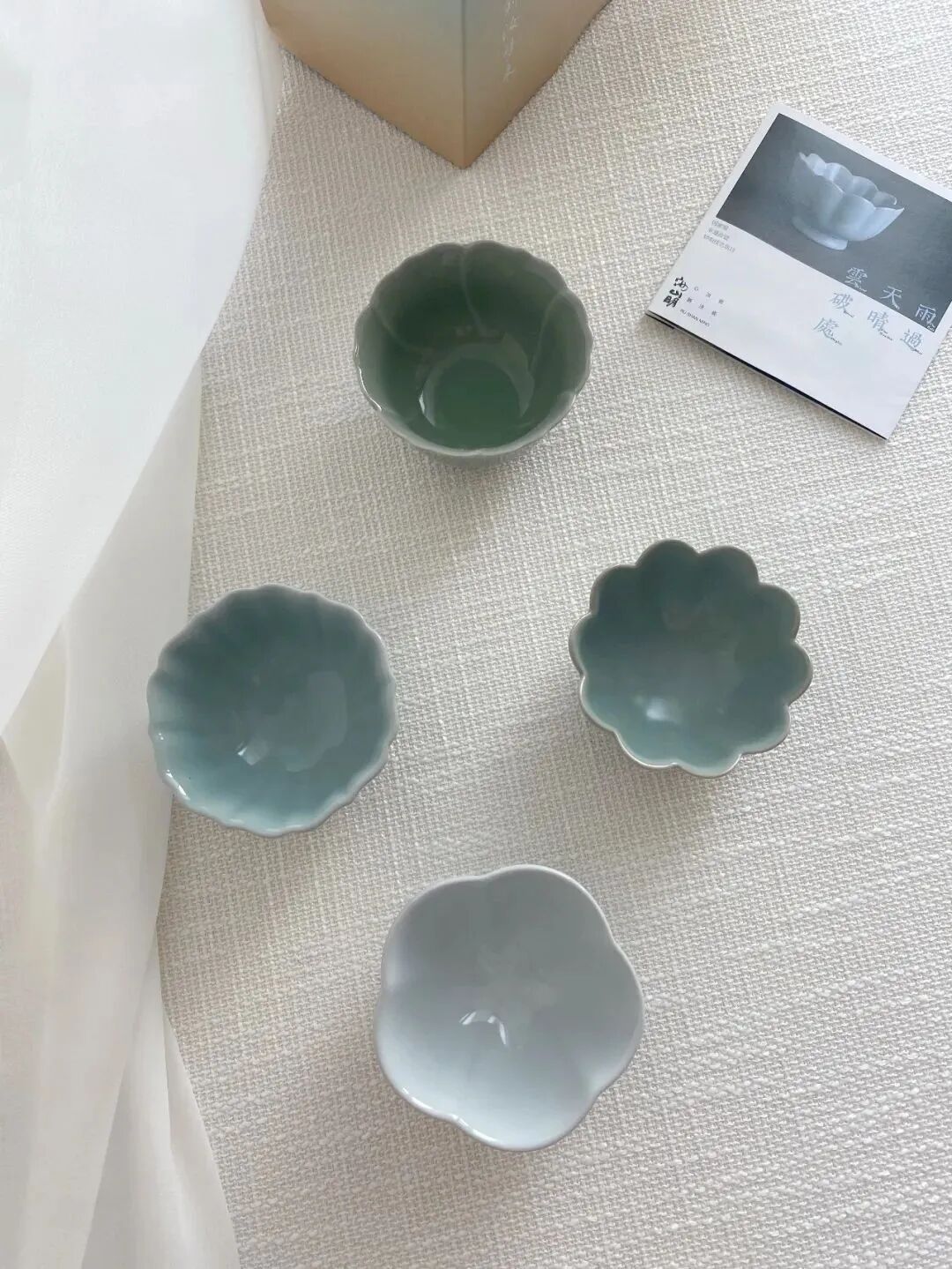 四季景致皆有大美,春、夏、秋、冬融入汝窑经典四釉色,以花为形,盛于杯盏之中。