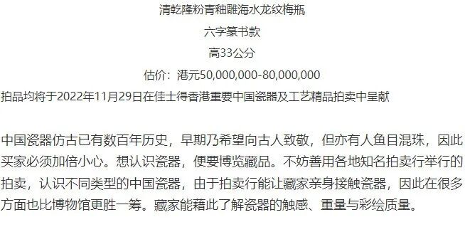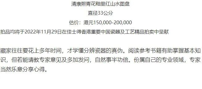 拍品均将于2022年11月29日在佳士得香港重要中国瓷器及工艺精品拍卖中呈献