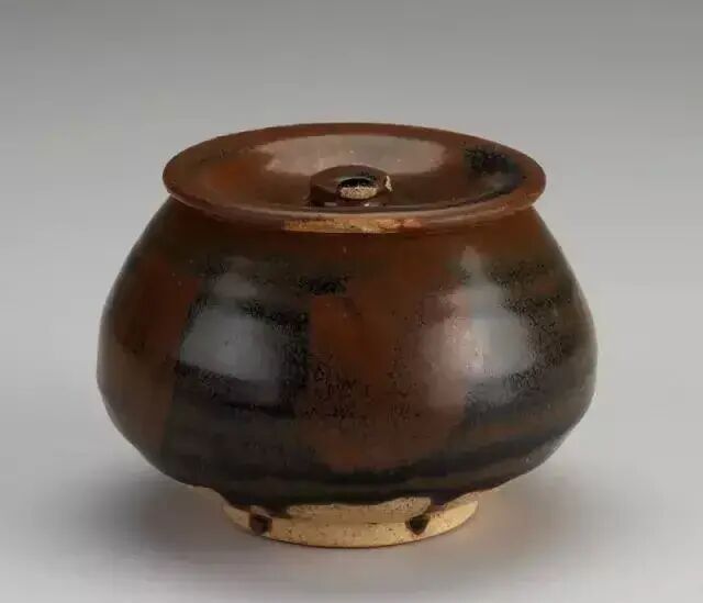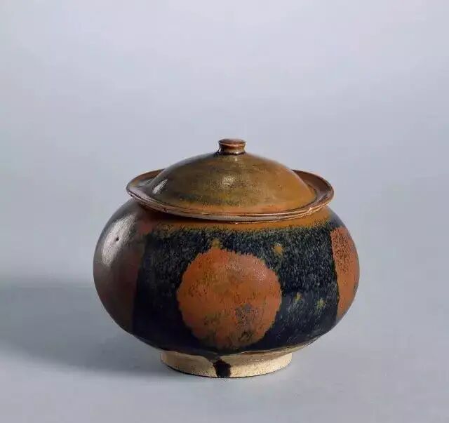 黑釉铁锈斑盖罐