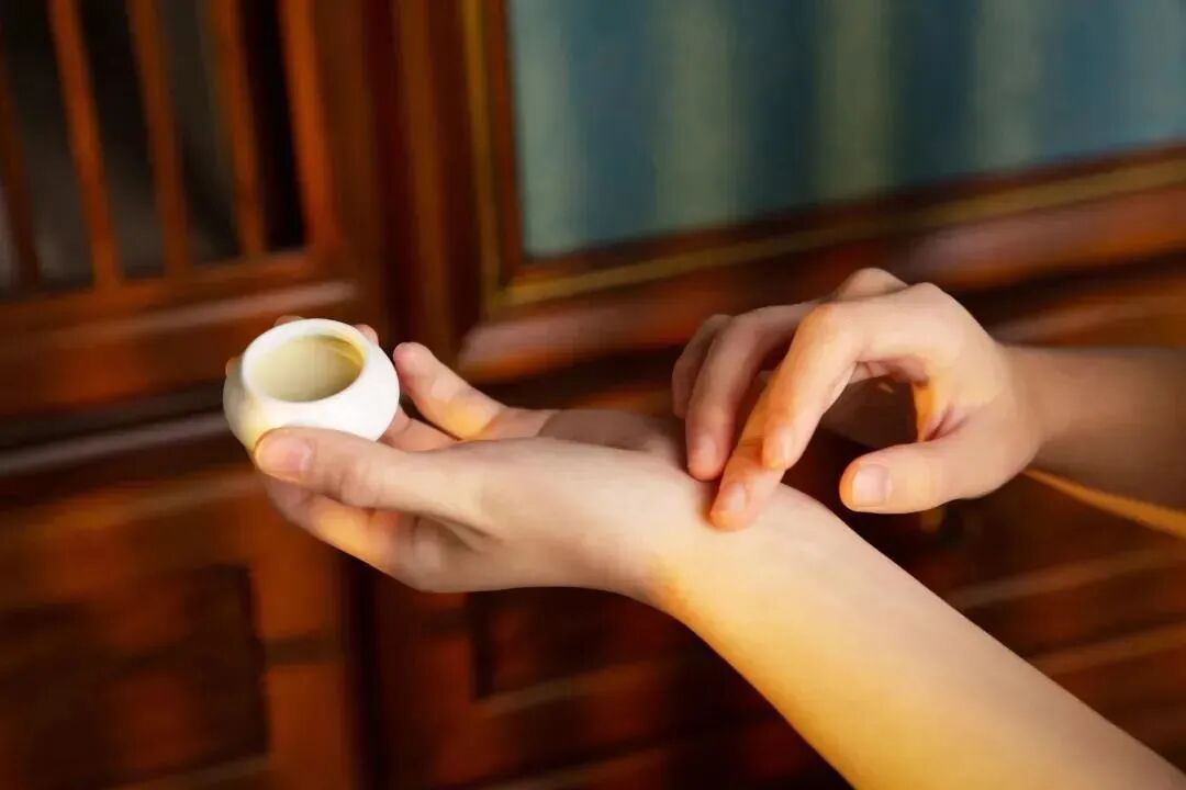 香膏是将香药配制好后调成膏状,再装入瓷罐密封放入地窖中。古时女子最喜爱靠妆匣里瓶瓶罐罐的香膏来保持肤若凝脂、通体含香。