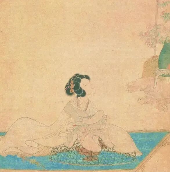 明陈洪绶《斜倚薰笼图》(局部)上海博物馆藏