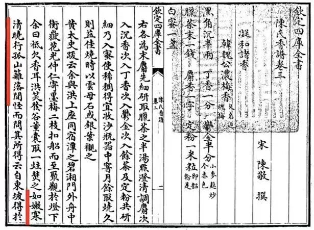 “韩魏公浓梅香”也称“返魂梅”,气味如梅般清冽,是宋代最为著名的梅花香方。此香以沉香、丁香、郁金、麝香相和,模拟梅花之香韵,在宋代文人墨客间十分有名,尤受男子追捧。相传,“韩魏公浓梅香”为韩忠献所作,又经由苏轼传播开来。后来,人们觉得“浓梅”未能彰显梅香的幽清,遂也以“返魂梅香”“藏春香”命名它。