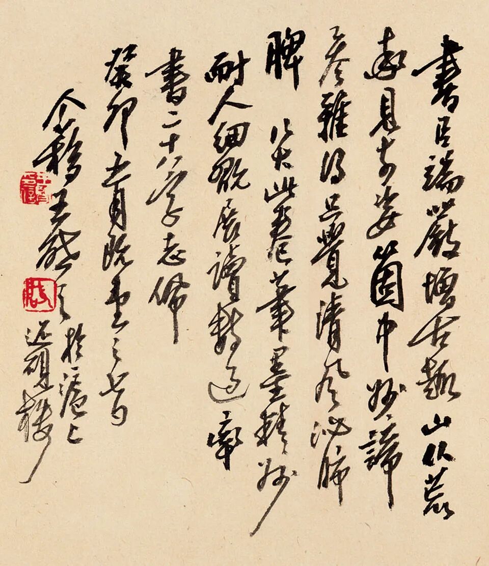 朱耷《山水书法合璧》 局部