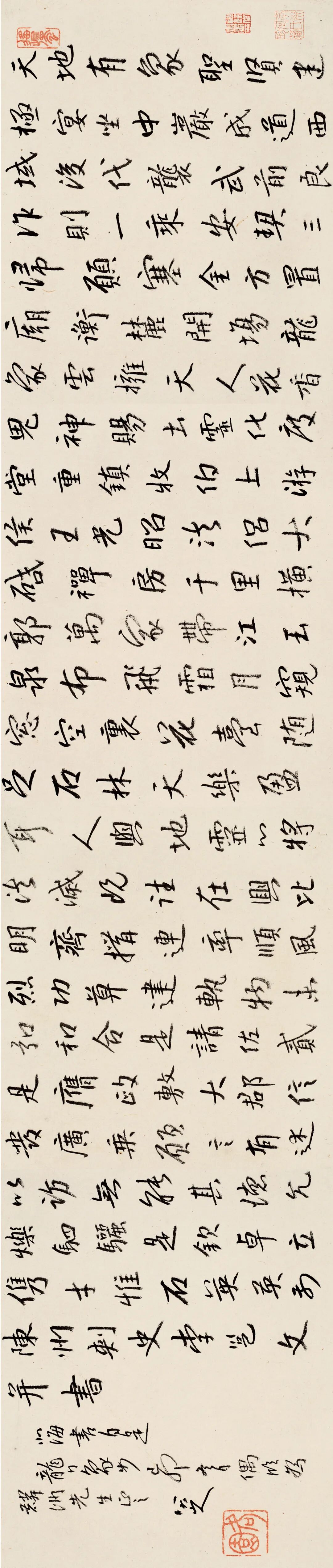 八大山人书赠麟洲先生之文,为“陈州刺史李邕文”。有人考证是李邕去北海上任路过陈州(今河南境)时,在那里作书画时所署之题款并习惯所用。全文二百余字,为临李北海《麓山寺碑》部分碑文,《麓山寺碑》全文一千五百余字,其中开始“天地有象,圣贤建极”,完全一致,其他,八大山人并未全按李邕《麓山寺碑》原件字序临书,有时他颠倒顺序,有时越过几个字再临,有时临了后面再返回来临前面,信笔所书,犹如作画,但全文中心意思不变。