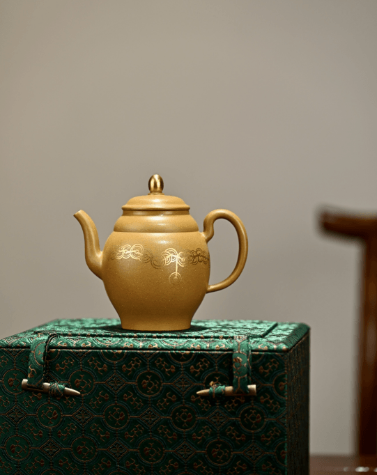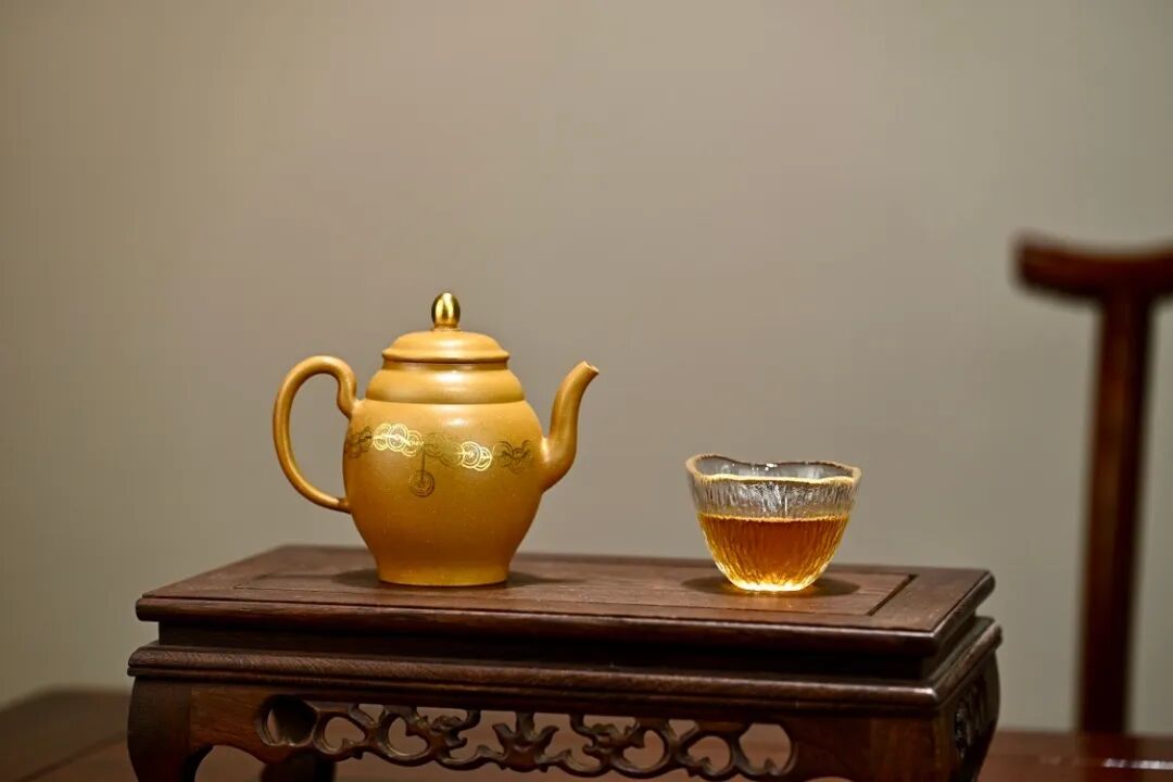 24K真金绘钱币贯穿腰身,寓意财源滚滚蕴藏壶中,非常有味道的一款明式风格作品。