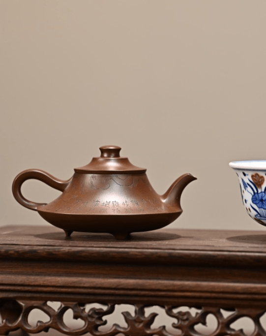 整器在方圆间展现微妙的融合与差异,如坦然之名,流鋬以四方切体,轮廓分明,整体造型比例协调,于稳健中见大气度。