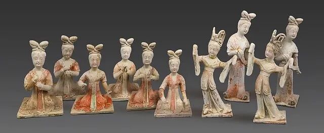 在“烧尾宴”菜单中,记载的烤制点心有两种,一种叫“曼陀罗夹饼”的夹陷烤饼,不仅是夹心饼干,还得做成曼陀罗蒴果的形状;另一种叫“金铃炙”,需要在原料里加酥油,再捏成铃铛形状烤制,从而使颜色金黄。不过唐人可不会满足于这些小饼干。除了烤,还有蒸、炸、煮等各种烹饪方式,对于烹饪的火候也有讲究,比如一道“水晶龙凤糕”,是一种以糯米为原料、内部嵌枣的糕点,蒸制时要保证糕面裂开、正好露出枣馅,裂少了见不着枣子不行,裂多了破了形也不行。还有一道“玉露团”,需要用又软又脆的奶酥雕花,十分考验厨师功力。但这些和“素蒸音声部”比起来,还是小巫见大巫。素蒸音声部,堪称这份菜单上最精妙的艺术品。它是一份用面塑制成的大型工艺食品,塑造的是一支由70人组成的大型宫廷舞乐队,其中既有各色乐工,还有引吭高歌、翩翩起舞的歌舞伎。虽然这道菜多半只是用来看的,不需要追求口感和味道,可光是设想70个形态各异、职业不同的人物,就能让许多人词穷。唐代厨师不但完成了画面设计,还将其一一用面塑表现出来。原本笨重的面团,在唐代厨师的手中变成众生百态,甚至还能腾云驾雾,如蓬莱仙子一般轻盈。![]()