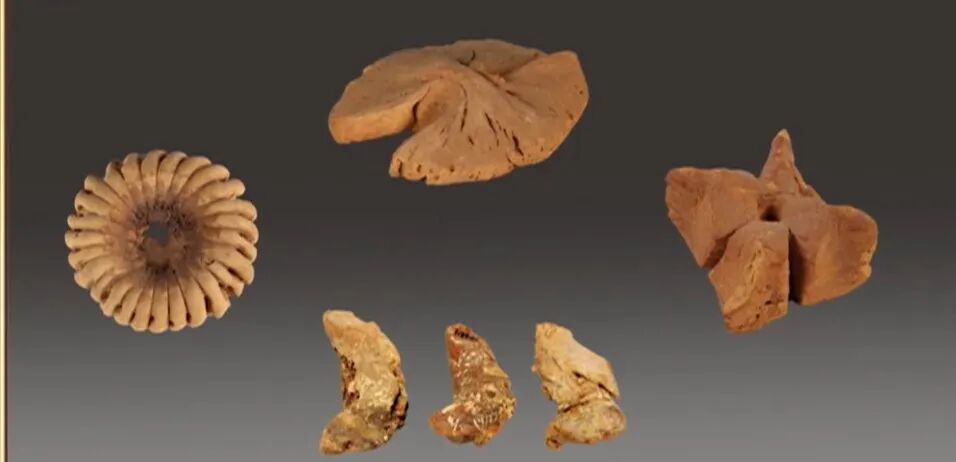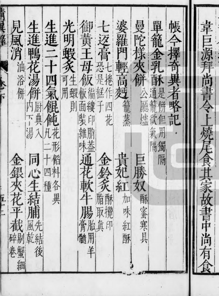 为了保证宴席的顺利筹备,韦巨源家的厨房记了一份“食账”,既包含各种菜式的名字,还有关于烹饪方法的简单注解。有赖于唐代文人特好记载日常琐事、稀奇传闻的习惯,到了唐末五代,这份珍贵的文字记录被一个叫陶毂的人抄录进自己的《清异录》中。元末明初,一个叫陶宗仪的文人又将这份食谱收录进自己的《说郛》里。如此经过一代代食客的传递,终于有一部分“烧尾宴”菜式保存至今。即便只是一份不完整的菜单,单看目前留存的菜式,也足够令人眼花缭乱。这份不完全的菜单里共有58道菜式,光各式点心就有20余种。央视节目《国宝大会》将这份“烧尾宴”菜单中的烤制点心比喻为“曲奇饼”,这不是没有道理的。这份“烧尾宴”菜单徒留文字,没有留下实物,但在新疆地区的唐墓中,确实出土了一些神似“曲奇饼干”的唐代陪葬面点。不但用料差不多,就连形状也分毫不差。通过对其成分的检测,可以证明在唐代,人们就能用非常精细的面粉制作面点了。![]()