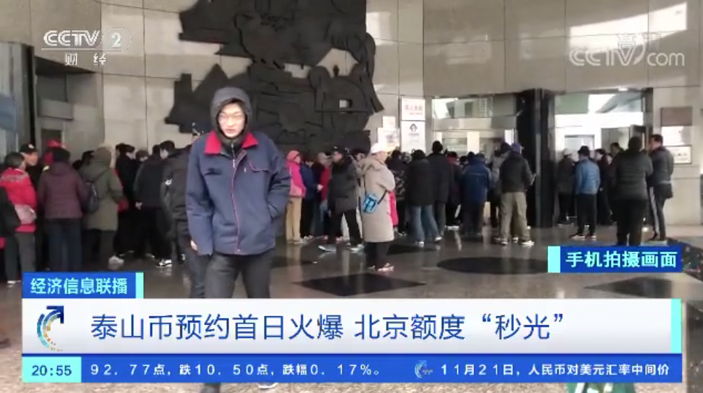 此外,普通纪念币的面额表明的是其法定价值,也就是真实价值。可以在发行期间,按照面值在银行进行预约兑换。泰山币银行预约场面