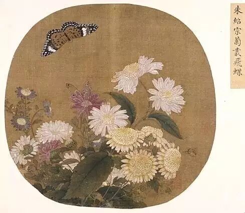 菊丛飞蝶图页宋,纨扇页,朱绍宗绘