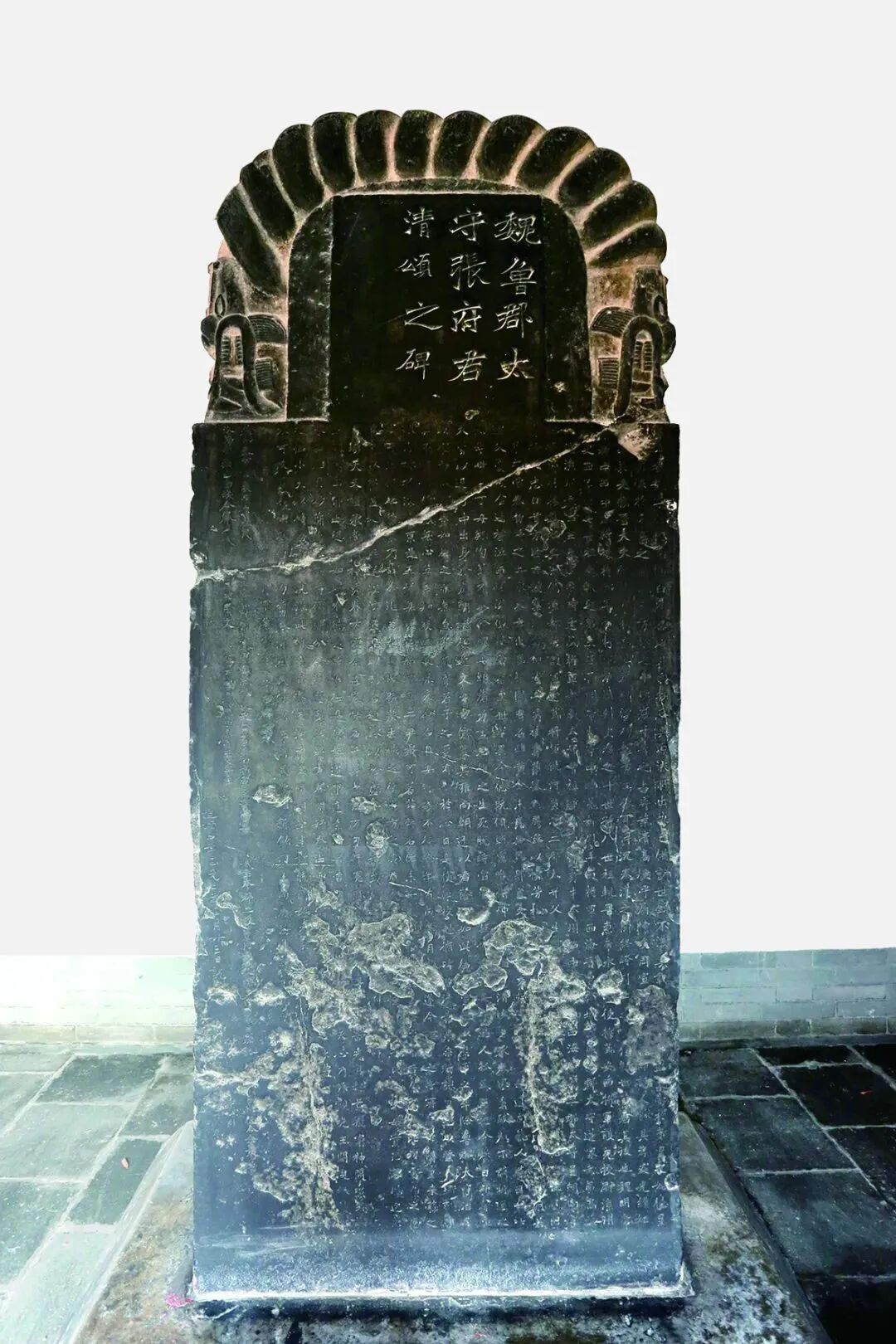 《张猛龙碑》全称《魏鲁郡太守张府君清颂之碑》,立于北魏正光三年(522),无撰书人姓名。碑额三行12字,正书“魏鲁郡太守张府君清颂之碑”;碑阳26行,满行46字,主要赞颂张猛龙兴办学校等功绩德行,末四行为题名年月;碑阴12列,每列2行至22行不等,刻立碑官吏名。现藏山东曲阜孔庙汉魏碑刻陈列馆。