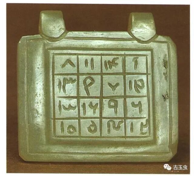 长方形,上有两贯耳可系绳佩挂。正面为一圆凸面,阴刻阿拉伯文字"万物非主,唯有真宰,穆汗默德,为其使者"的清真言。反面方框4行16格,每格内填一阿拉伯数码字,数字形体是13世纪时的阿拉伯文,隶定为现代通用数码字,是继元代安西王府出土铁幻方后的又一重要发现。由于幻方具有一定的神秘性,所以成了伊斯兰教徒佩以护身的信念物。