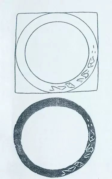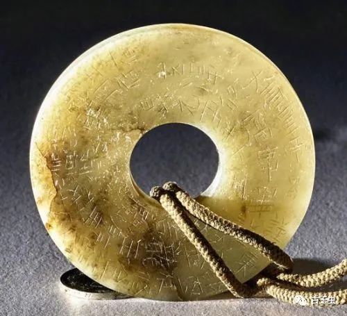 玉璧共49个铭文:“大唐皇帝 昪 谨于东都内庭 修金箓道场 设醮谢土上仰玄泽 修斋事毕 谨以金龙玉璧 投诣西山洞府 升元四年十月 日 告闻”。