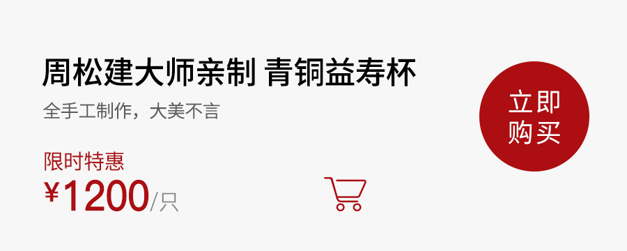 另外一款由周松建老师亲制的青铜韵益寿杯,杯子拿到手里同样很惊艳。