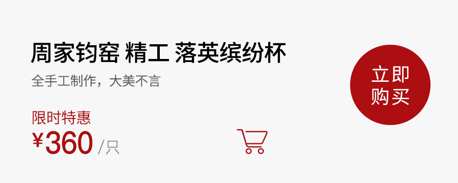 这款落英缤纷钧瓷杯一共有两个杯型,益寿杯更圆润敦厚,很适合送给长者;