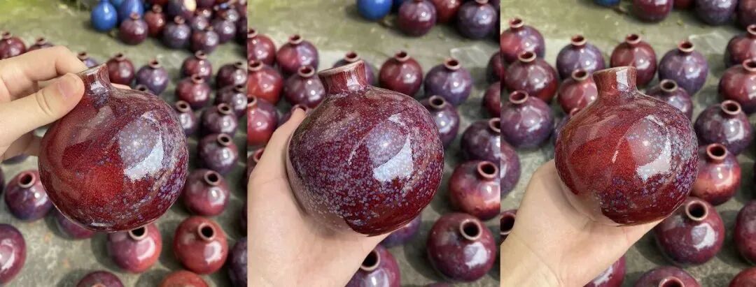 因为钧瓷的制作过程充满了太多随机性,即使是同一批次,也不会有两件釉色完全相同的钧瓷作品。